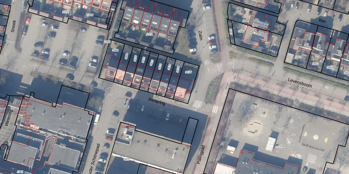 Gebruik de zoekbalk of klik op een perceel voor informatie over de adressen binnen dit perceel.
