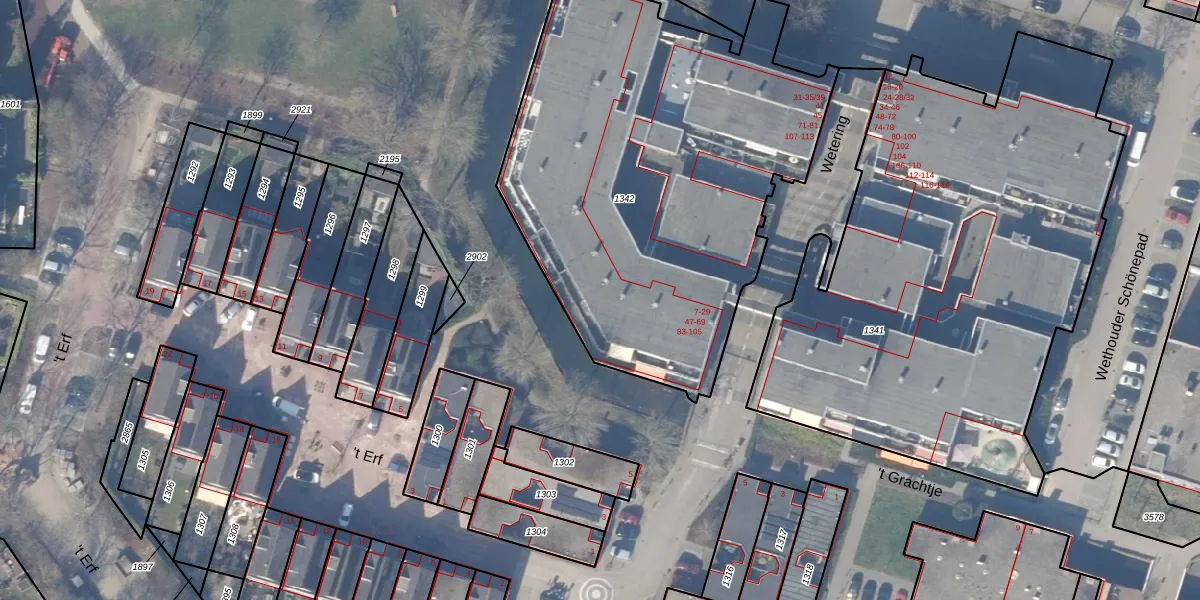 Het perceel waarop Wetering 53 staat heeft een oppervlakte van 2495 m². Dit is een zeer groot perceel. De perceeloppervlakte wordt geregistreerd door het Kadaster. Gedetailleerde informatie over de maten van dit perceel kunt u vinden in het rapport Kadastrale kaart met maatvoering van Wetering 53.