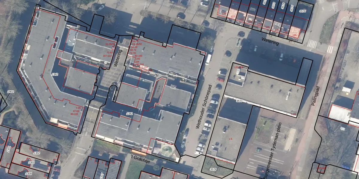 Het perceel waarop Wetering 66 staat heeft een oppervlakte van 2905 m². Dit is een zeer groot perceel. De perceeloppervlakte wordt geregistreerd door het Kadaster. Gedetailleerde informatie over de maten van dit perceel kunt u vinden in het rapport Kadastrale kaart met maatvoering van Wetering 66.