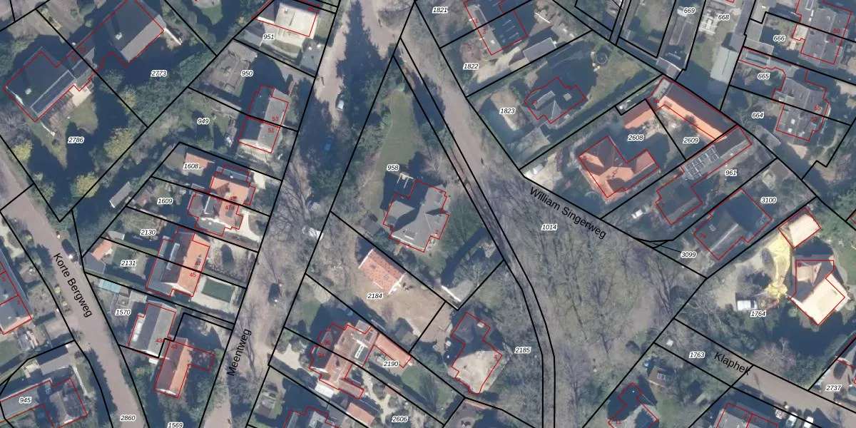 William Singerweg 2 is gelegen op kadastraal perceel BRC00E958. Deze kadastrale aanduiding is uniek en wordt gebruikt door het Kadaster om eigendomsrechten en andere zakelijke rechten vast te leggen. Het perceel maakt onderdeel uit van de kadastrale gemeente Blaricum.