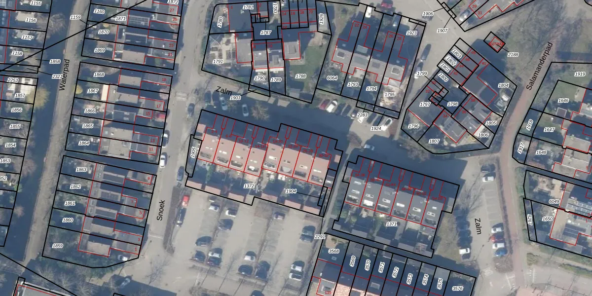 Het perceel waarop Zalm 24 staat heeft een oppervlakte van 1207 m². Dit is een zeer groot perceel. De perceeloppervlakte wordt geregistreerd door het Kadaster. Gedetailleerde informatie over de maten van dit perceel kunt u vinden in het rapport Kadastrale kaart met maatvoering van Zalm 24.