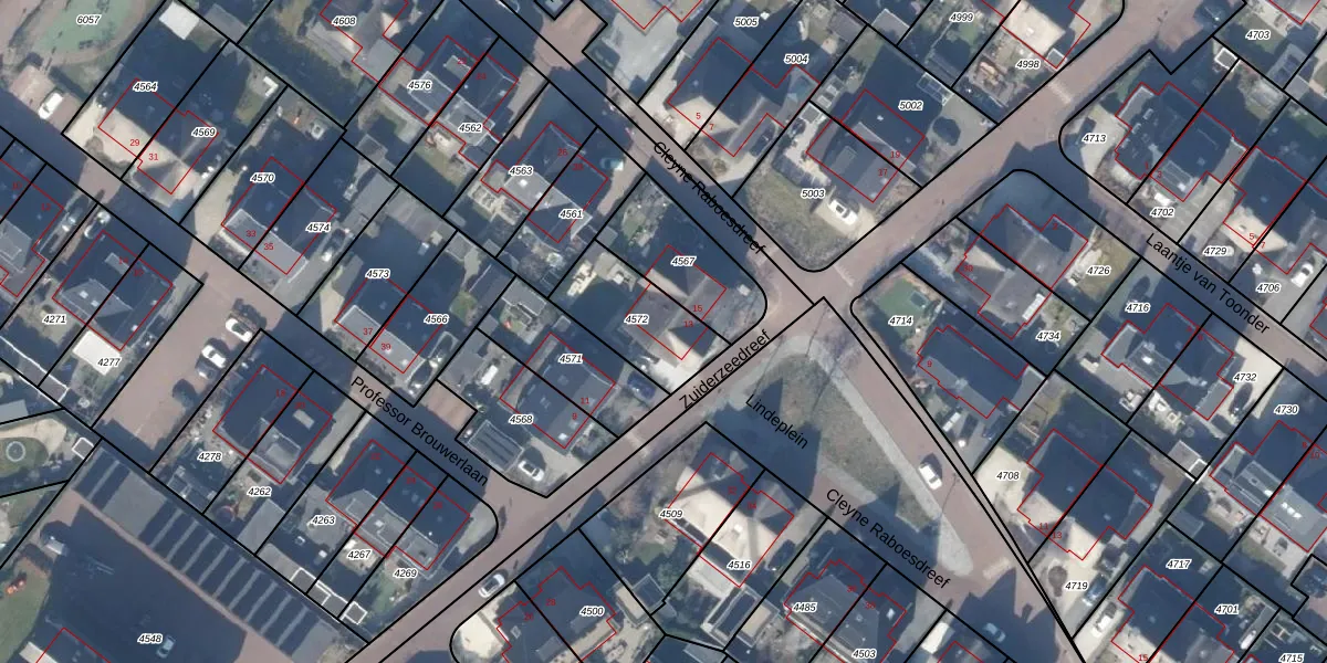 Gebruik de zoekbalk of klik op een perceel voor informatie over de adressen binnen dit perceel.