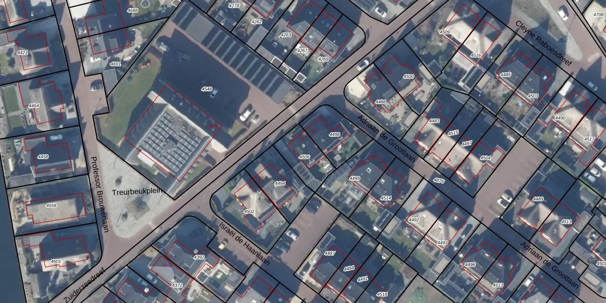 Het adres is gelegen op perceel 4506 in de sectie C en de kadastrale gemeente Blaricum. De kadastrale aanduiding is aldus BRC00-C-4506. Het perceel is 223 m² groot. Dat is kleiner dan de gemiddelde perceeloppervlakte in Blaricum, dat op 2165,71 m² ligt. De grootste perceeloppervlakte in de kadastrale gemeente is 3,41 km². De kleinste oppervlakte bedraagt 0 m². Op het perceel bevinden zich geen andere adressen. In de Basisregistratie Kadaster (BRK) werden de grenzen van het perceel geregistreerd op 16-07-2018.
