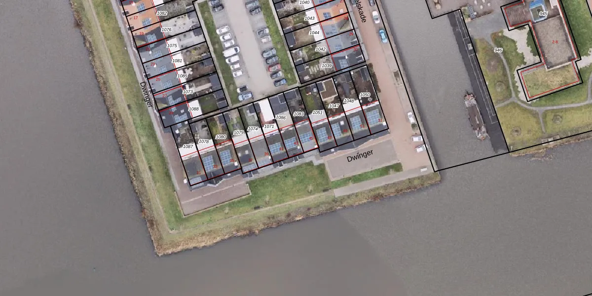 Dwinger 43 is gelegen op kadastraal perceel WST00I1086. Deze kadastrale aanduiding is uniek en wordt gebruikt door het Kadaster om eigendomsrechten en andere zakelijke rechten vast te leggen. Het perceel maakt onderdeel uit van de kadastrale gemeente Winschoten.