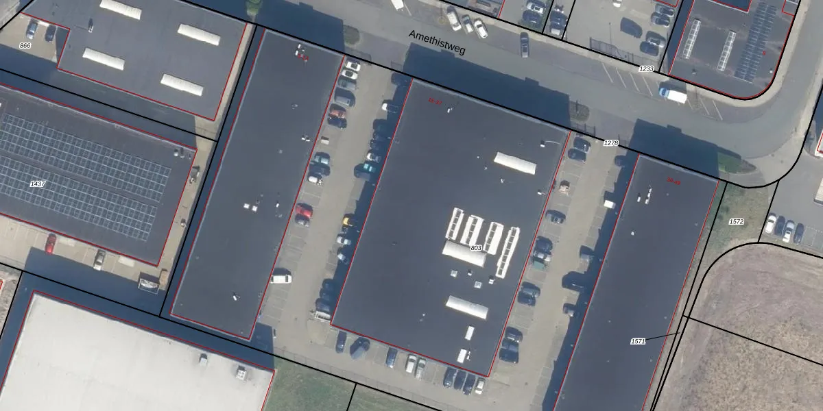 Het perceel waarop Amethistweg 19 staat heeft een oppervlakte van 9040 m². Dit is een zeer groot perceel. De perceeloppervlakte wordt geregistreerd door het Kadaster. Gedetailleerde informatie over de maten van dit perceel kunt u vinden in het rapport Kadastrale kaart met maatvoering van Amethistweg 19.