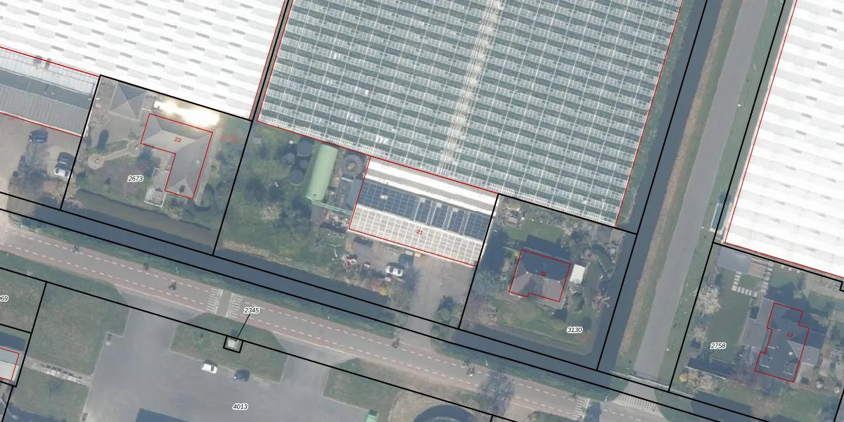 Het perceel waarop het adres ligt is BWK02-D-3129. De afkorting 'BWK02' staat voor kadastrale gemeente Bleiswijk. De gemiddelde perceeloppervlakte in de kadastrale gemeente Bleiswijk is 3196,87 m². Dit perceel is met zijn 2,2 ha dus groter dan gemiddeld. Het grootste perceel in de kadastrale gemeente is 44,5 ha. Het kleinste perceel heeft een oppervlakte van 0 m². Dit is het enige adres dat aanwezig is op het perceel. In de Basisregistratie Kadaster (BRK) werden de grenzen van het perceel geregistreerd op 19-12-2008.