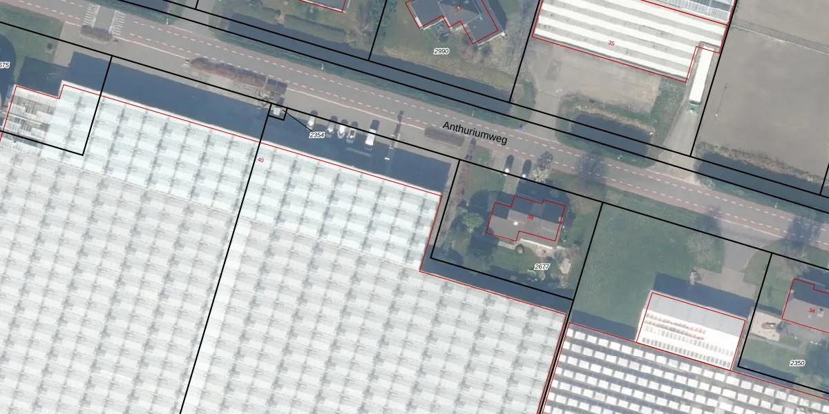 Anthuriumweg 40 is gelegen op kadastraal perceel BWK02D2676. Deze kadastrale aanduiding is uniek en wordt gebruikt door het Kadaster om eigendomsrechten en andere zakelijke rechten vast te leggen. Het perceel maakt onderdeel uit van de kadastrale gemeente Bleiswijk.
