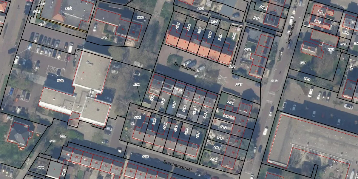 Het perceel waarop Beatrixplein 7 staat heeft een oppervlakte van 121 m². Dit is een middelgroot perceel. De perceeloppervlakte wordt geregistreerd door het Kadaster. Gedetailleerde informatie over de maten van dit perceel kunt u vinden in het rapport Kadastrale kaart met maatvoering van Beatrixplein 7.
