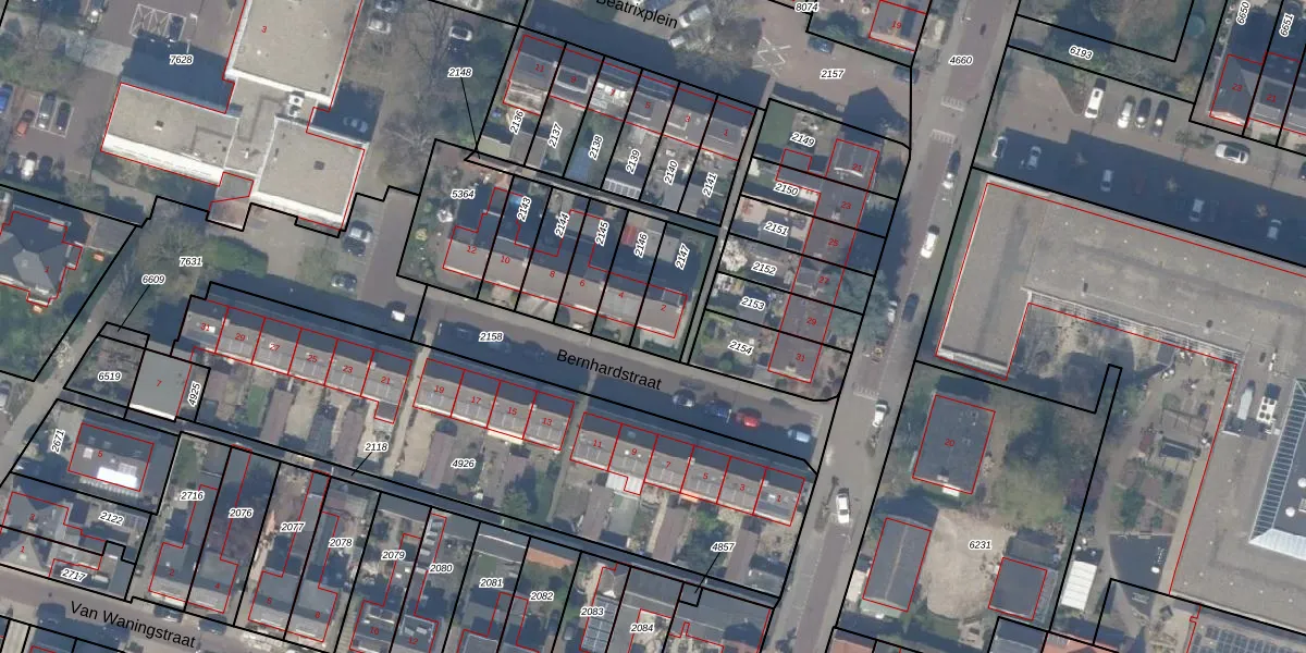 Het perceel waarop Bernhardstraat 2 staat heeft een oppervlakte van 157 m². Dit is een middelgroot perceel. De perceeloppervlakte wordt geregistreerd door het Kadaster. Gedetailleerde informatie over de maten van dit perceel kunt u vinden in het rapport Kadastrale kaart met maatvoering van Bernhardstraat 2.