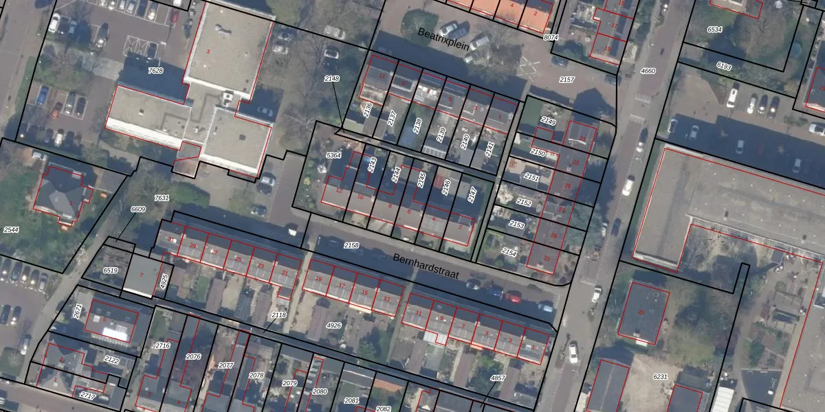 Gebruik de zoekbalk of klik op een perceel voor informatie over de adressen binnen dit perceel.