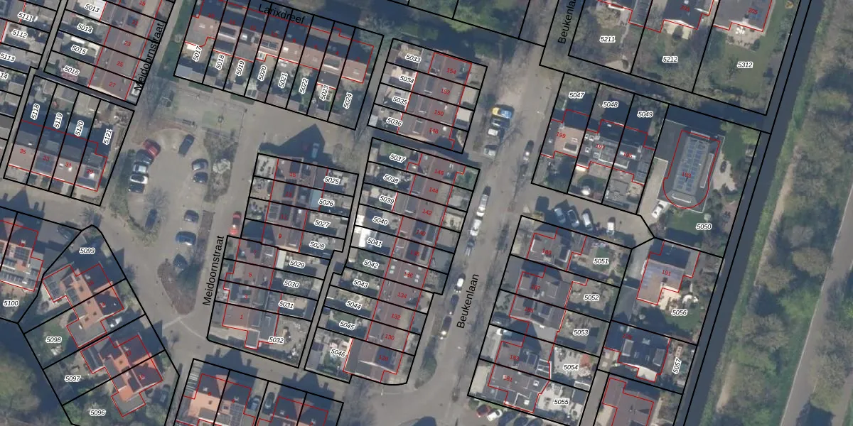 Het perceel waarop Beukenlaan 142 staat heeft een oppervlakte van 129 m². Dit is een middelgroot perceel. De perceeloppervlakte wordt geregistreerd door het Kadaster. Gedetailleerde informatie over de maten van dit perceel kunt u vinden in het rapport Kadastrale kaart met maatvoering van Beukenlaan 142.