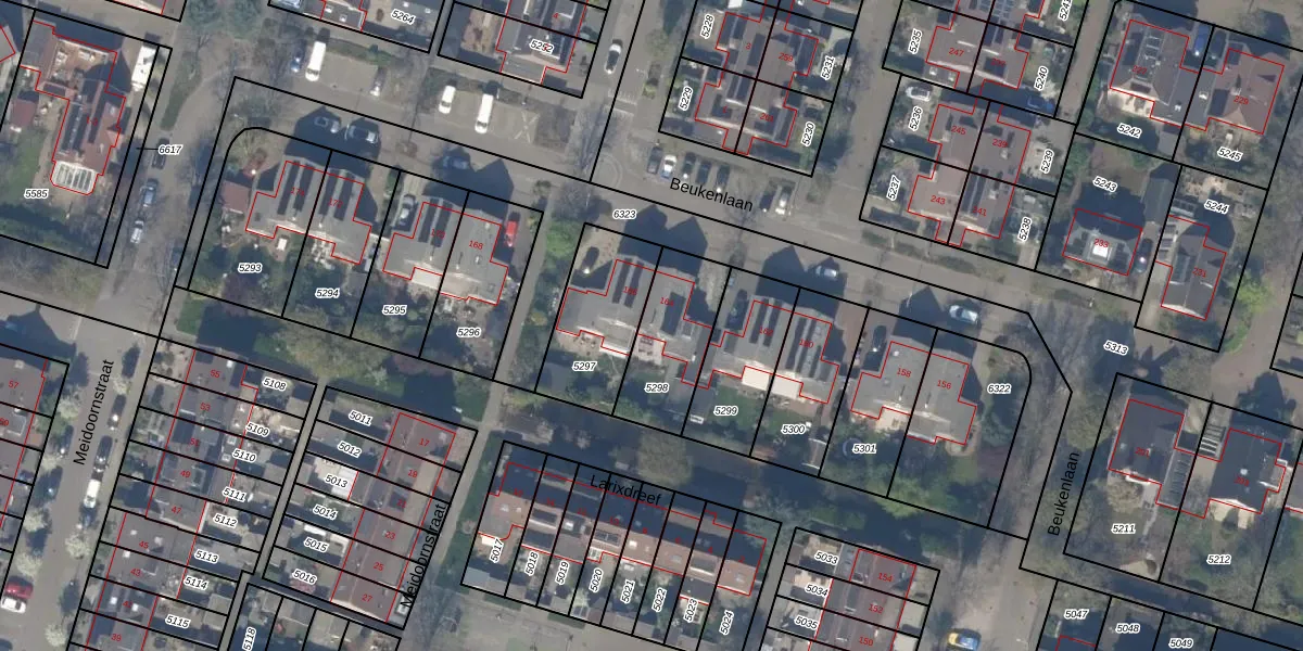Het perceel waarop Beukenlaan 164 staat heeft een oppervlakte van 299 m². Dit is een middelgroot perceel. De perceeloppervlakte wordt geregistreerd door het Kadaster. Gedetailleerde informatie over de maten van dit perceel kunt u vinden in het rapport Kadastrale kaart met maatvoering van Beukenlaan 164.