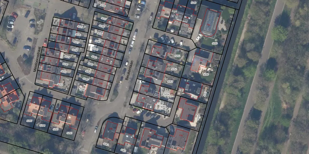 Beukenlaan 185 is gelegen op kadastraal perceel BWK02C5053. Deze kadastrale aanduiding is uniek en wordt gebruikt door het Kadaster om eigendomsrechten en andere zakelijke rechten vast te leggen. Het perceel maakt onderdeel uit van de kadastrale gemeente Bleiswijk.