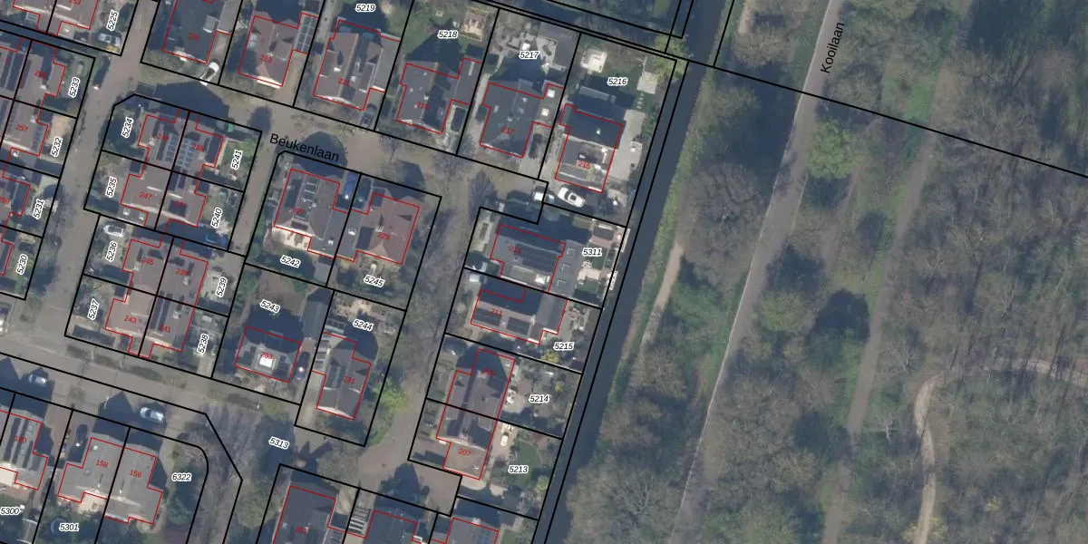 Beukenlaan 213 is gelegen op kadastraal perceel BWK02C5311. Deze kadastrale aanduiding is uniek en wordt gebruikt door het Kadaster om eigendomsrechten en andere zakelijke rechten vast te leggen. Het perceel maakt onderdeel uit van de kadastrale gemeente Bleiswijk.
