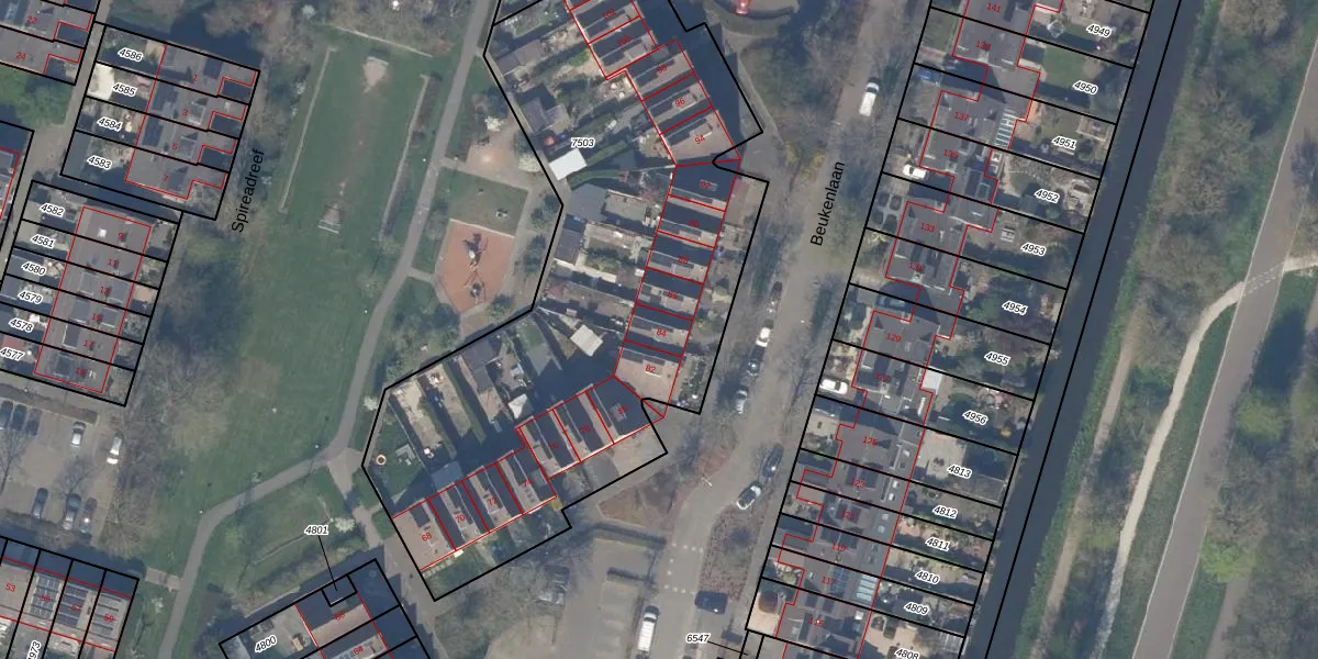 Het perceel waarop Beukenlaan 84 staat heeft een oppervlakte van 3013 m². Dit is een zeer groot perceel. De perceeloppervlakte wordt geregistreerd door het Kadaster. Gedetailleerde informatie over de maten van dit perceel kunt u vinden in het rapport Kadastrale kaart met maatvoering van Beukenlaan 84.