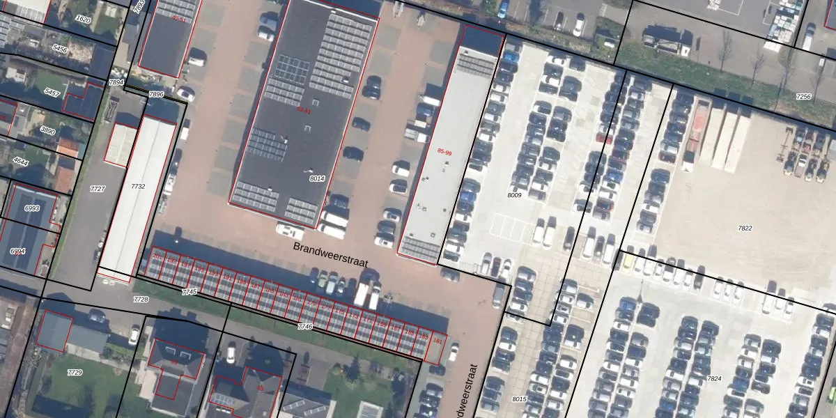 Het perceel waarop Brandweerstraat 97 staat heeft een oppervlakte van 7154 m². Dit is een zeer groot perceel. De perceeloppervlakte wordt geregistreerd door het Kadaster. Gedetailleerde informatie over de maten van dit perceel kunt u vinden in het rapport Kadastrale kaart met maatvoering van Brandweerstraat 97.