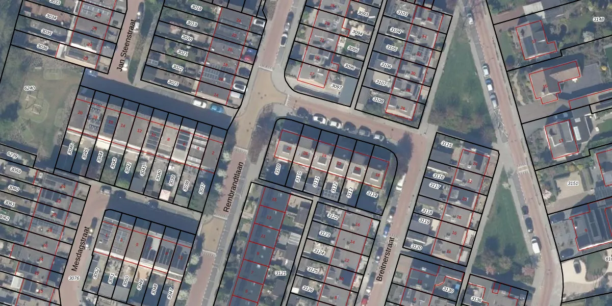 Gebruik de zoekbalk of klik op een perceel voor informatie over de adressen binnen dit perceel.