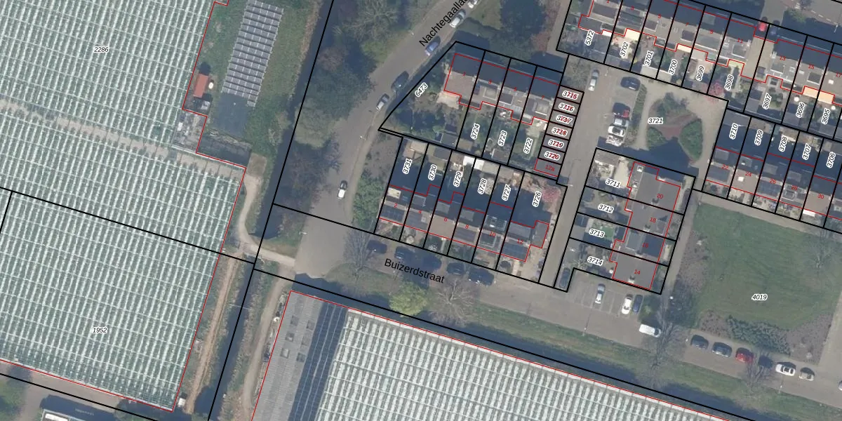 Buizerdstraat 4 is gelegen op kadastraal perceel BWK02C3730. Deze kadastrale aanduiding is uniek en wordt gebruikt door het Kadaster om eigendomsrechten en andere zakelijke rechten vast te leggen. Het perceel maakt onderdeel uit van de kadastrale gemeente Bleiswijk.