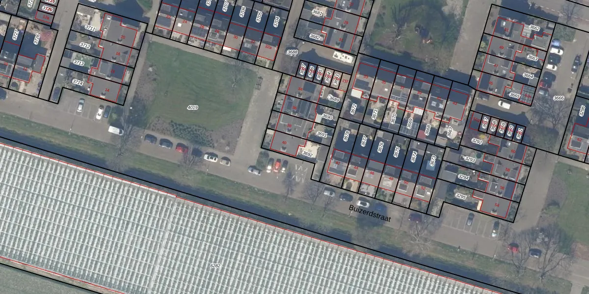 Buizerdstraat 40 is gelegen op kadastraal perceel BWK02C3692. Deze kadastrale aanduiding is uniek en wordt gebruikt door het Kadaster om eigendomsrechten en andere zakelijke rechten vast te leggen. Het perceel maakt onderdeel uit van de kadastrale gemeente Bleiswijk.