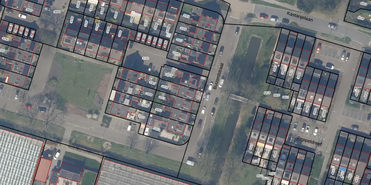 Buizerdstraat 86 is gelegen op kadastraal perceel BWK02C3314. Deze kadastrale aanduiding is uniek en wordt gebruikt door het Kadaster om eigendomsrechten en andere zakelijke rechten vast te leggen. Het perceel maakt onderdeel uit van de kadastrale gemeente Bleiswijk.