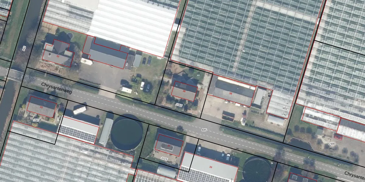 Chrysantenweg 36 is gelegen op kadastraal perceel BWK02B1065. Deze kadastrale aanduiding is uniek en wordt gebruikt door het Kadaster om eigendomsrechten en andere zakelijke rechten vast te leggen. Het perceel maakt onderdeel uit van de kadastrale gemeente Bleiswijk.