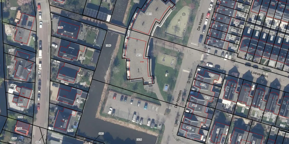 Het perceel waarop De Horsten 26 staat heeft een oppervlakte van 565 m². Dit is een groot perceel. De perceeloppervlakte wordt geregistreerd door het Kadaster. Gedetailleerde informatie over de maten van dit perceel kunt u vinden in het rapport Kadastrale kaart met maatvoering van De Horsten 26.