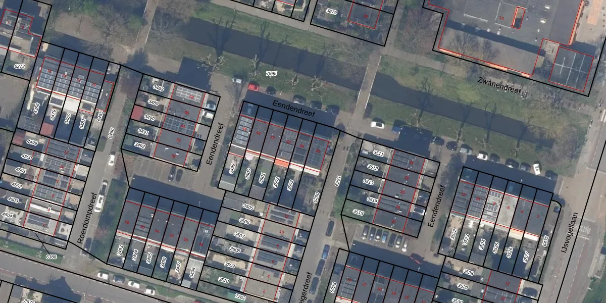 Gebruik de zoekbalk of klik op een perceel voor informatie over de adressen binnen dit perceel.