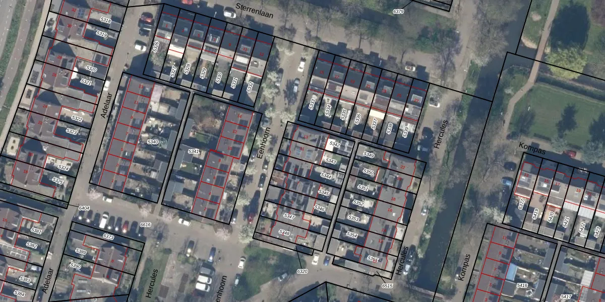 Gebruik de zoekbalk of klik op een perceel voor informatie over de adressen binnen dit perceel.