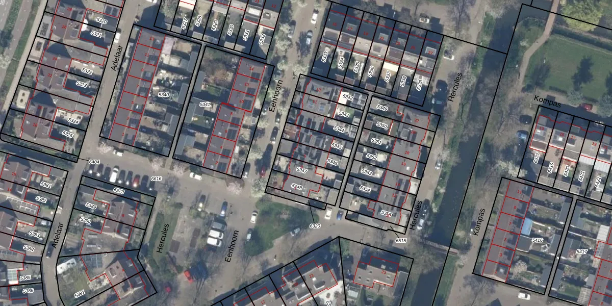 Gebruik de zoekbalk of klik op een perceel voor informatie over de adressen binnen dit perceel.