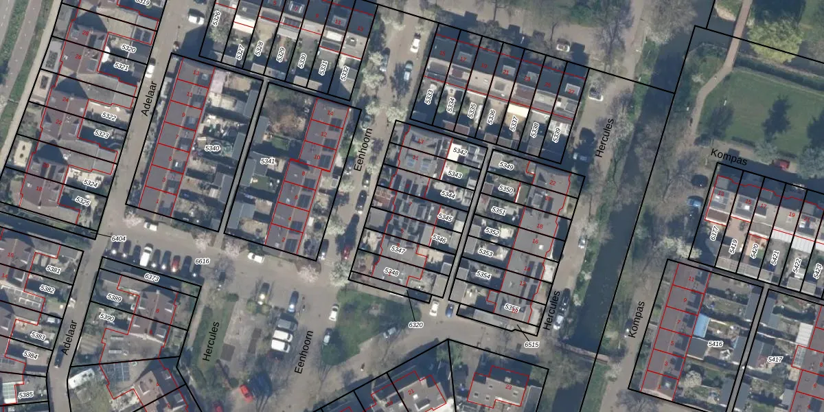 Gebruik de zoekbalk of klik op een perceel voor informatie over de adressen binnen dit perceel.