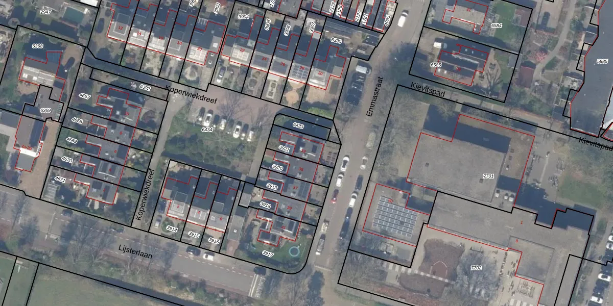 Gebruik de zoekbalk of klik op een perceel voor informatie over de adressen binnen dit perceel.