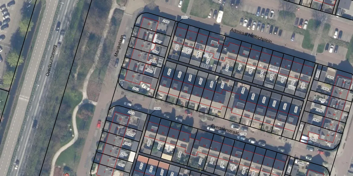 Het perceel waarop Evertsenstraat 21 staat heeft een oppervlakte van 142 m². Dit is een middelgroot perceel. De perceeloppervlakte wordt geregistreerd door het Kadaster. Gedetailleerde informatie over de maten van dit perceel kunt u vinden in het rapport Kadastrale kaart met maatvoering van Evertsenstraat 21.