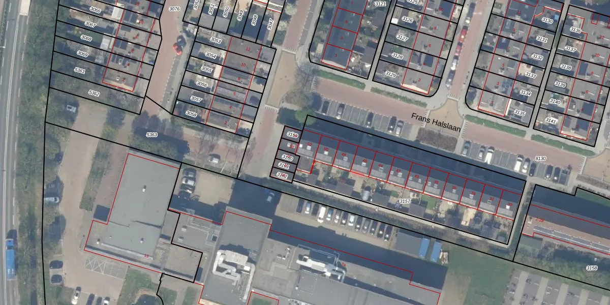 Het perceel waarop Frans Halslaan 52 staat heeft een oppervlakte van 1657 m². Dit is een zeer groot perceel. De perceeloppervlakte wordt geregistreerd door het Kadaster. Gedetailleerde informatie over de maten van dit perceel kunt u vinden in het rapport Kadastrale kaart met maatvoering van Frans Halslaan 52.