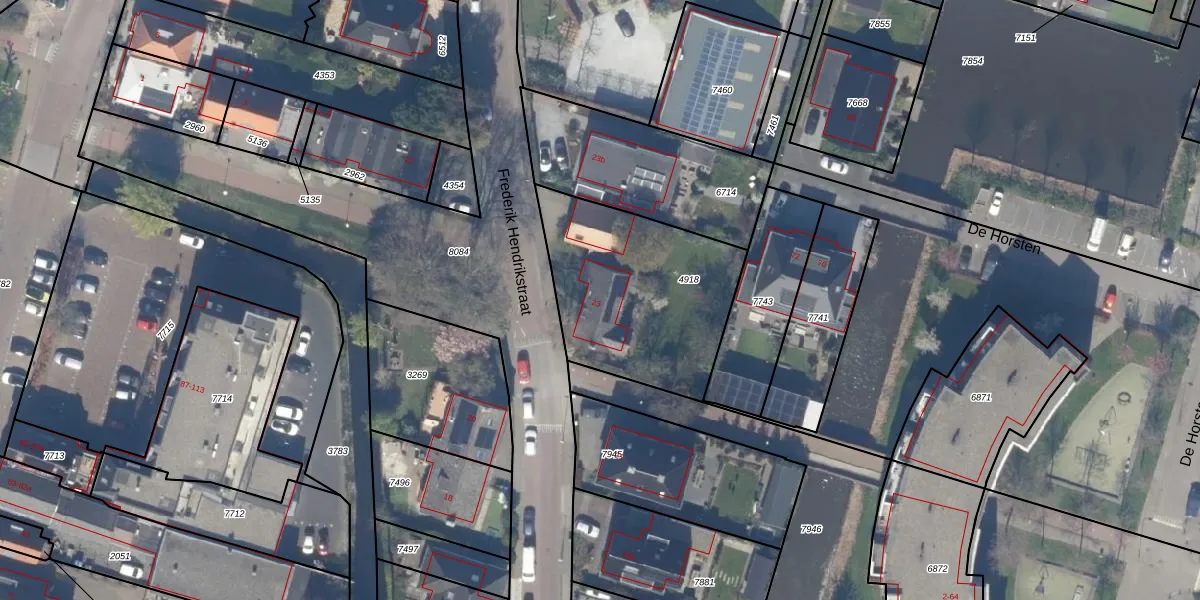 Frederik Hendrikstraat 23 is gelegen op kadastraal perceel BWK02C4918. Deze kadastrale aanduiding is uniek en wordt gebruikt door het Kadaster om eigendomsrechten en andere zakelijke rechten vast te leggen. Het perceel maakt onderdeel uit van de kadastrale gemeente Bleiswijk.
