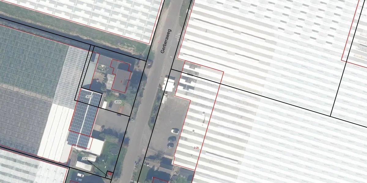 Gerberaweg 2-b is gelegen op kadastraal perceel BWK02D2371. Deze kadastrale aanduiding is uniek en wordt gebruikt door het Kadaster om eigendomsrechten en andere zakelijke rechten vast te leggen. Het perceel maakt onderdeel uit van de kadastrale gemeente Bleiswijk.