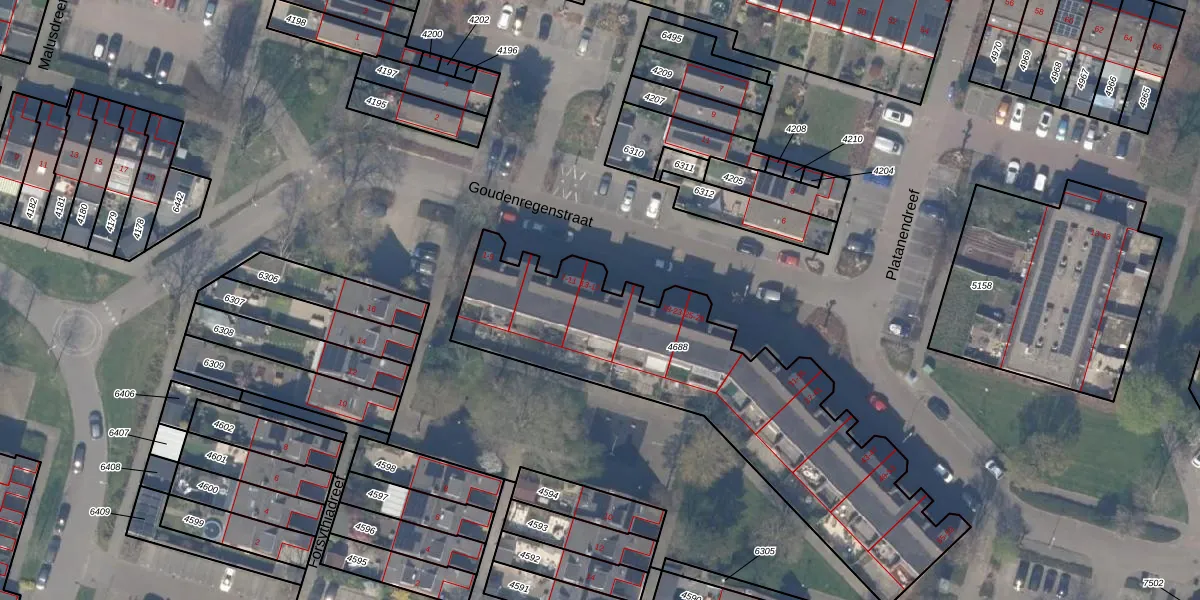 Het perceel waarop Goudenregenstraat 17 staat heeft een oppervlakte van 1537 m². Dit is een zeer groot perceel. De perceeloppervlakte wordt geregistreerd door het Kadaster. Gedetailleerde informatie over de maten van dit perceel kunt u vinden in het rapport Kadastrale kaart met maatvoering van Goudenregenstraat 17.