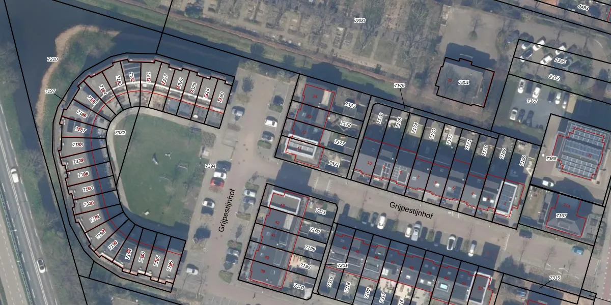 Het perceel waarop Grijpestijnhof 11 staat heeft een oppervlakte van 185 m². Dit is een middelgroot perceel. De perceeloppervlakte wordt geregistreerd door het Kadaster. Gedetailleerde informatie over de maten van dit perceel kunt u vinden in het rapport Kadastrale kaart met maatvoering van Grijpestijnhof 11.