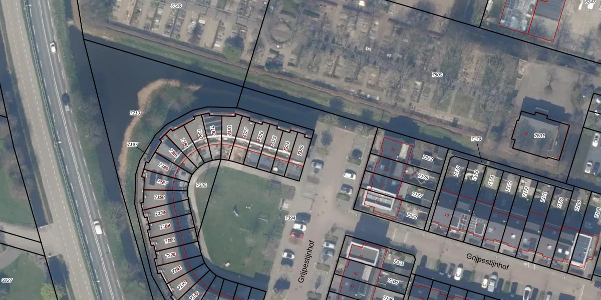Het perceel waarop Grijpestijnhof 15 staat heeft een oppervlakte van 78 m². Dit is een klein perceel. De perceeloppervlakte wordt geregistreerd door het Kadaster. Gedetailleerde informatie over de maten van dit perceel kunt u vinden in het rapport Kadastrale kaart met maatvoering van Grijpestijnhof 15.