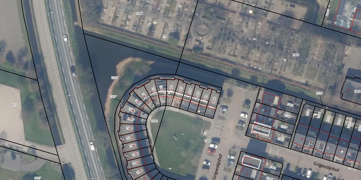 Het perceel waarop Grijpestijnhof 19 staat heeft een oppervlakte van 71 m². Dit is een klein perceel. De perceeloppervlakte wordt geregistreerd door het Kadaster. Gedetailleerde informatie over de maten van dit perceel kunt u vinden in het rapport Kadastrale kaart met maatvoering van Grijpestijnhof 19.