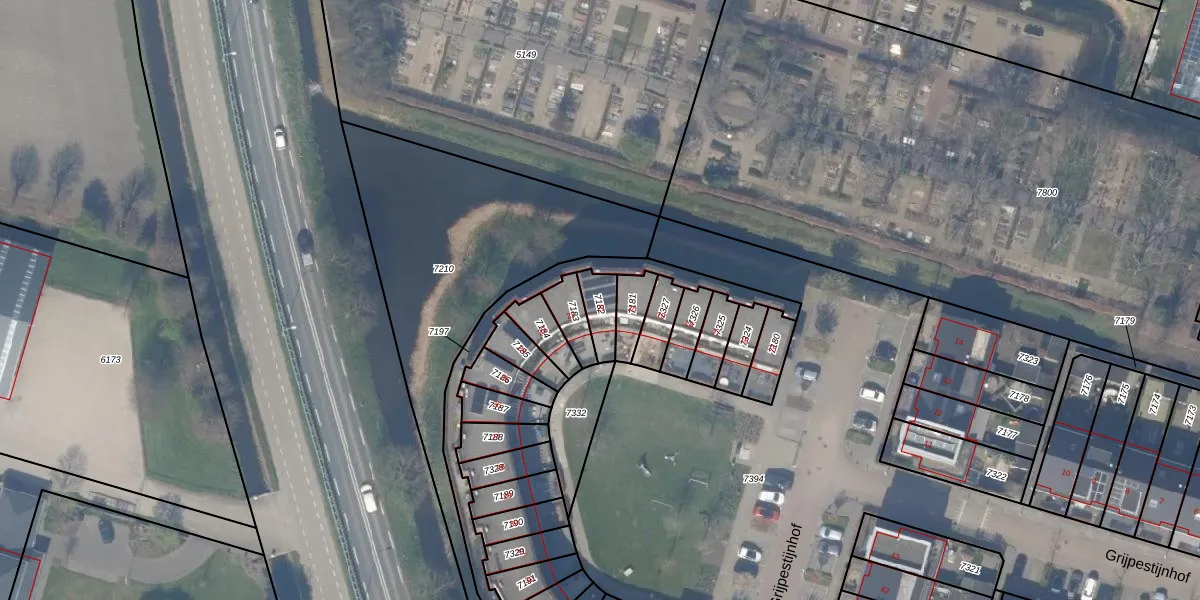 Het perceel waarop Grijpestijnhof 21 staat heeft een oppervlakte van 72 m². Dit is een klein perceel. De perceeloppervlakte wordt geregistreerd door het Kadaster. Gedetailleerde informatie over de maten van dit perceel kunt u vinden in het rapport Kadastrale kaart met maatvoering van Grijpestijnhof 21.