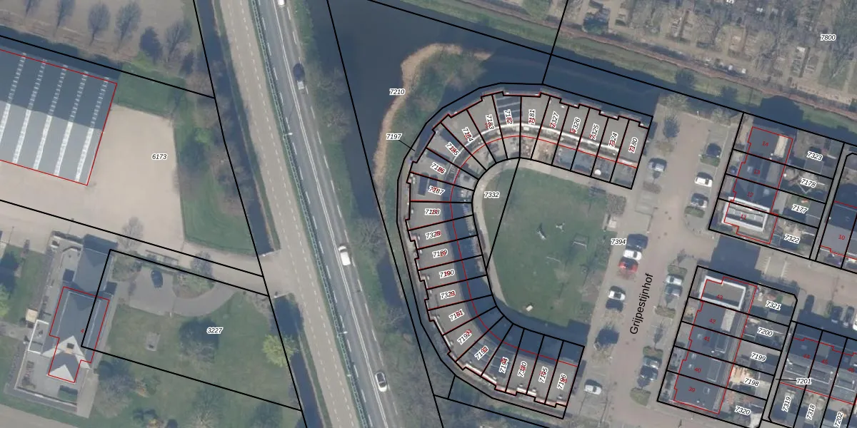 Het perceel waarop Grijpestijnhof 27 staat heeft een oppervlakte van 72 m². Dit is een klein perceel. De perceeloppervlakte wordt geregistreerd door het Kadaster. Gedetailleerde informatie over de maten van dit perceel kunt u vinden in het rapport Kadastrale kaart met maatvoering van Grijpestijnhof 27.