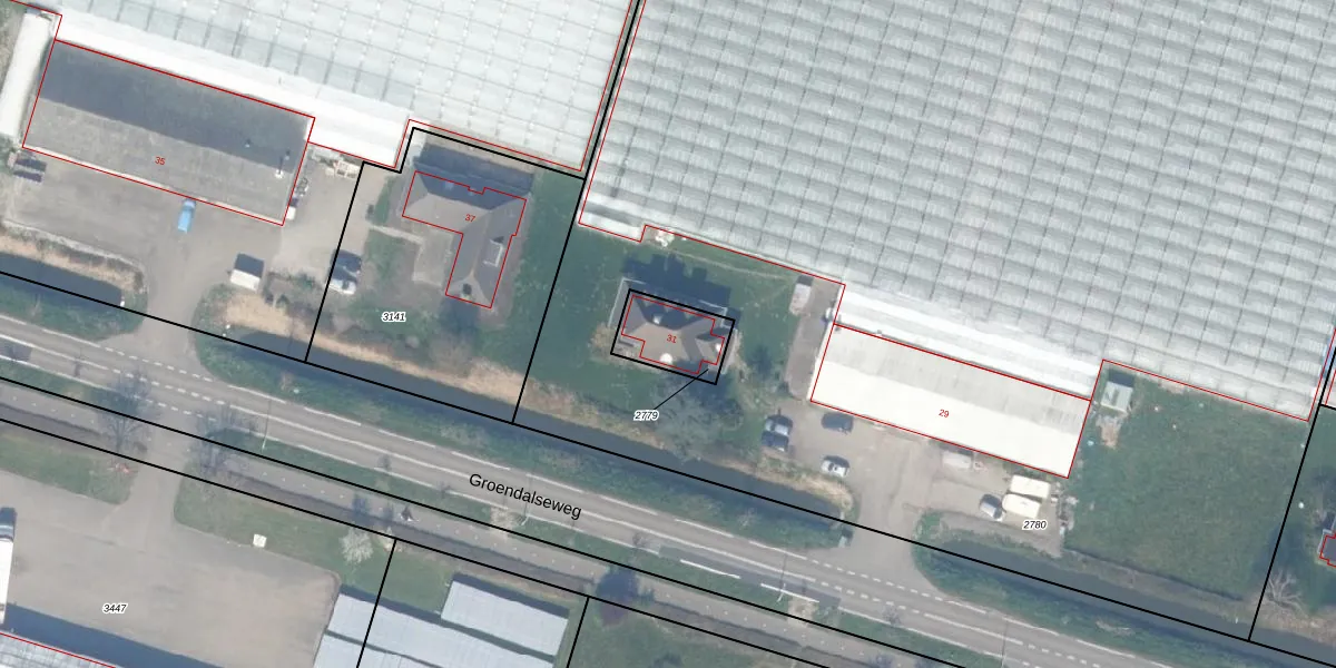 Groendalseweg 31 is gelegen op kadastraal perceel BWK02D2779. Deze kadastrale aanduiding is uniek en wordt gebruikt door het Kadaster om eigendomsrechten en andere zakelijke rechten vast te leggen. Het perceel maakt onderdeel uit van de kadastrale gemeente Bleiswijk.