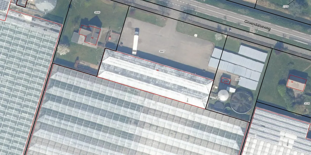 Groendalseweg 40 is gelegen op kadastraal perceel BWK02D3447. Deze kadastrale aanduiding is uniek en wordt gebruikt door het Kadaster om eigendomsrechten en andere zakelijke rechten vast te leggen. Het perceel maakt onderdeel uit van de kadastrale gemeente Bleiswijk.