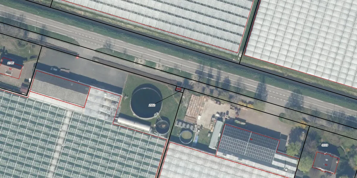 Het adres is gelegen op perceel 2552 in de sectie D en de kadastrale gemeente Bleiswijk. De kadastrale aanduiding is aldus BWK02-D-2552. De gemiddelde perceelgrootte in Bleiswijk is 3196,87 m². Dit perceel is kleiner: de perceeloppervlakte bedraagt 12 m². De grootste perceeloppervlakte in de kadastrale gemeente is 44,5 ha. De kleinste oppervlakte bedraagt 0 m². Dit is het enige adres dat aanwezig is op het perceel. De huidige grenzen van het perceel zijn digitaal in de Basisregistratie Kadaster (BRK) geregistreerd op 14-06-2007.