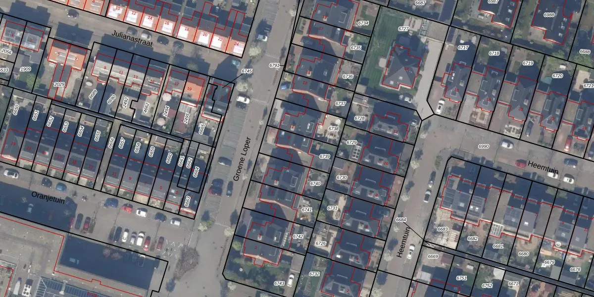 Gebruik de zoekbalk of klik op een perceel voor informatie over de adressen binnen dit perceel.