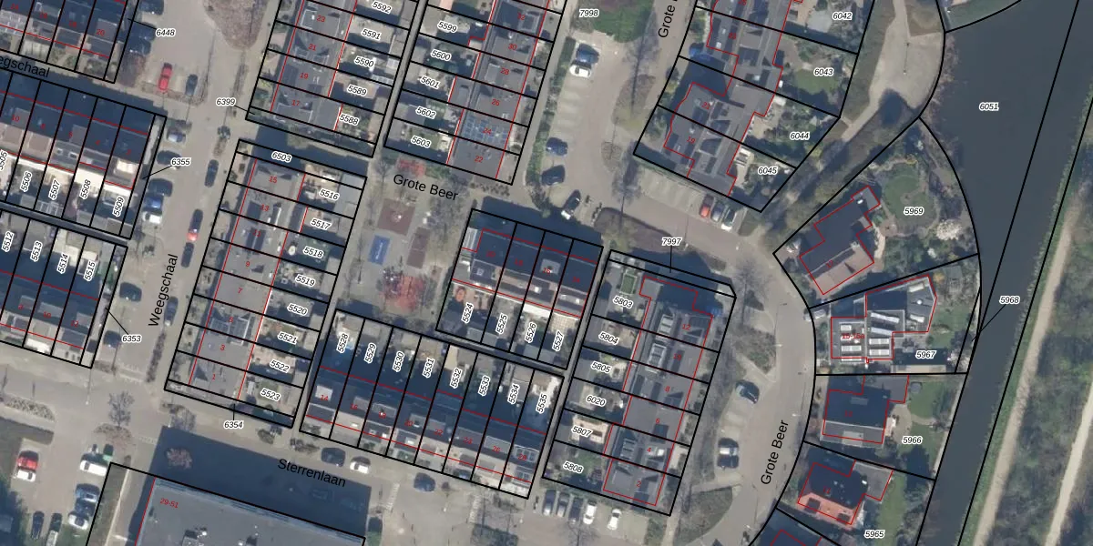 Gebruik de zoekbalk of klik op een perceel voor informatie over de adressen binnen dit perceel.