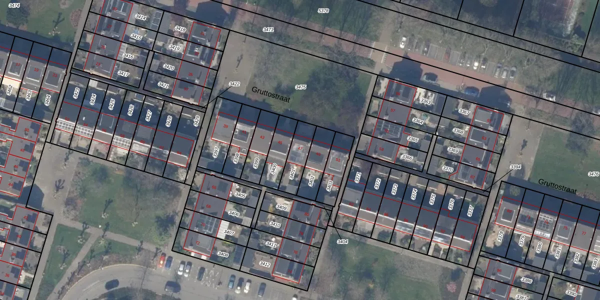 Het perceel waarop Gruttostraat 47 staat heeft een oppervlakte van 156 m². Dit is een middelgroot perceel. De perceeloppervlakte wordt geregistreerd door het Kadaster. Gedetailleerde informatie over de maten van dit perceel kunt u vinden in het rapport Kadastrale kaart met maatvoering van Gruttostraat 47.