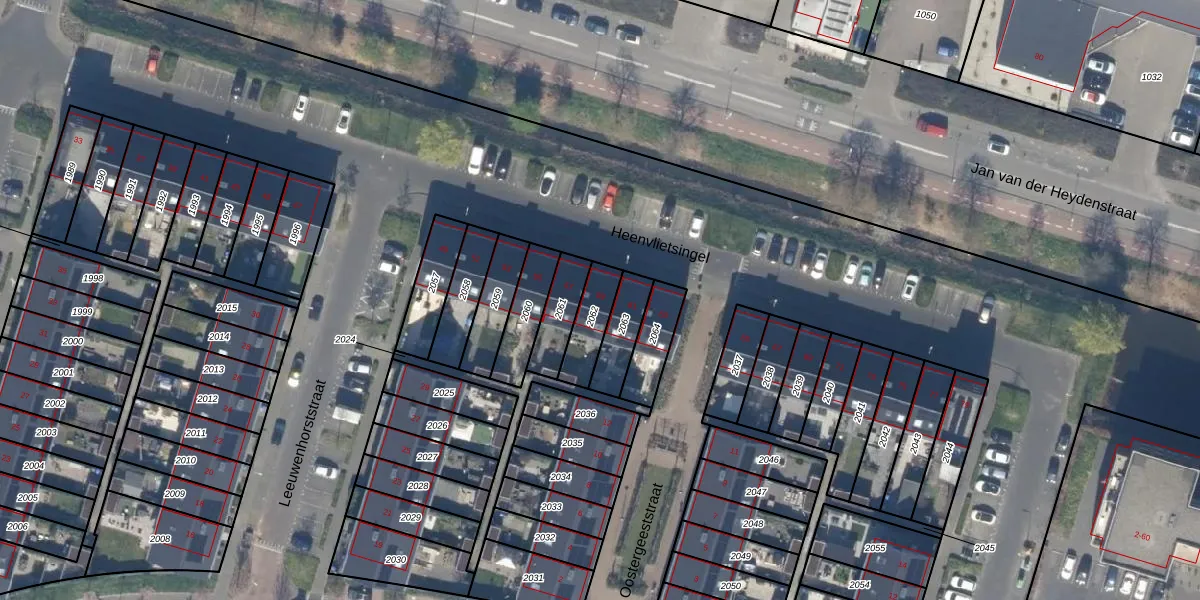 Gebruik de zoekbalk of klik op een perceel voor informatie over de adressen binnen dit perceel.