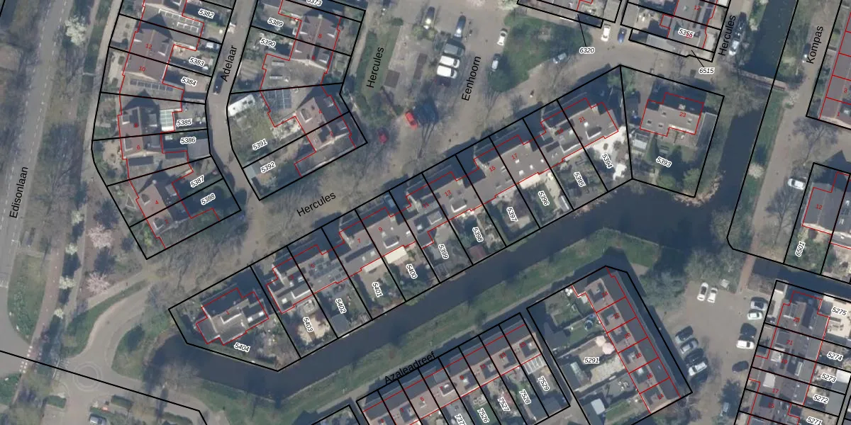 Gebruik de zoekbalk of klik op een perceel voor informatie over de adressen binnen dit perceel.