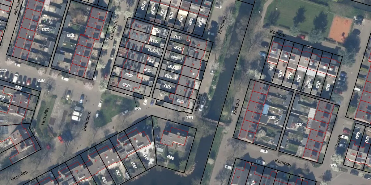 Gebruik de zoekbalk of klik op een perceel voor informatie over de adressen binnen dit perceel.